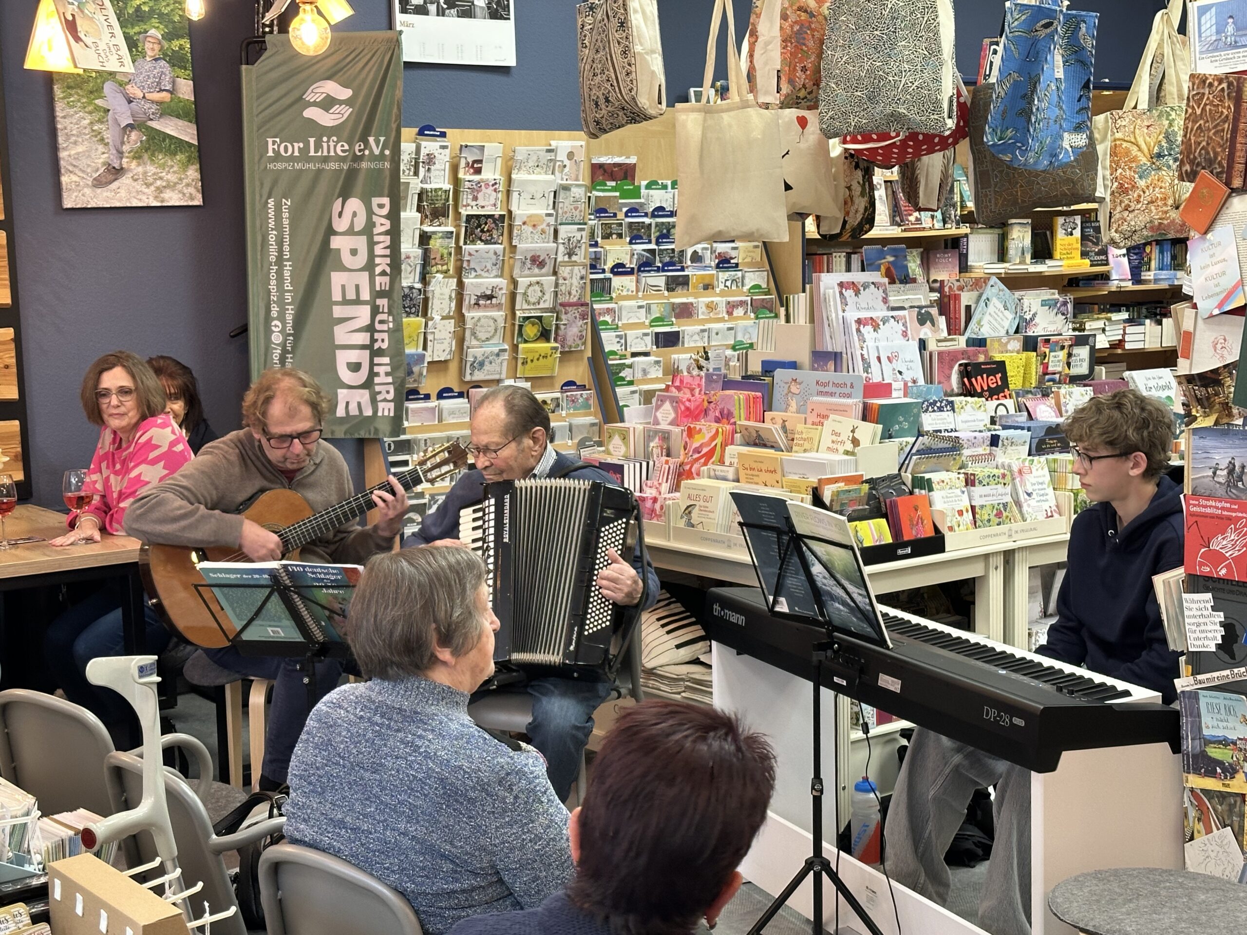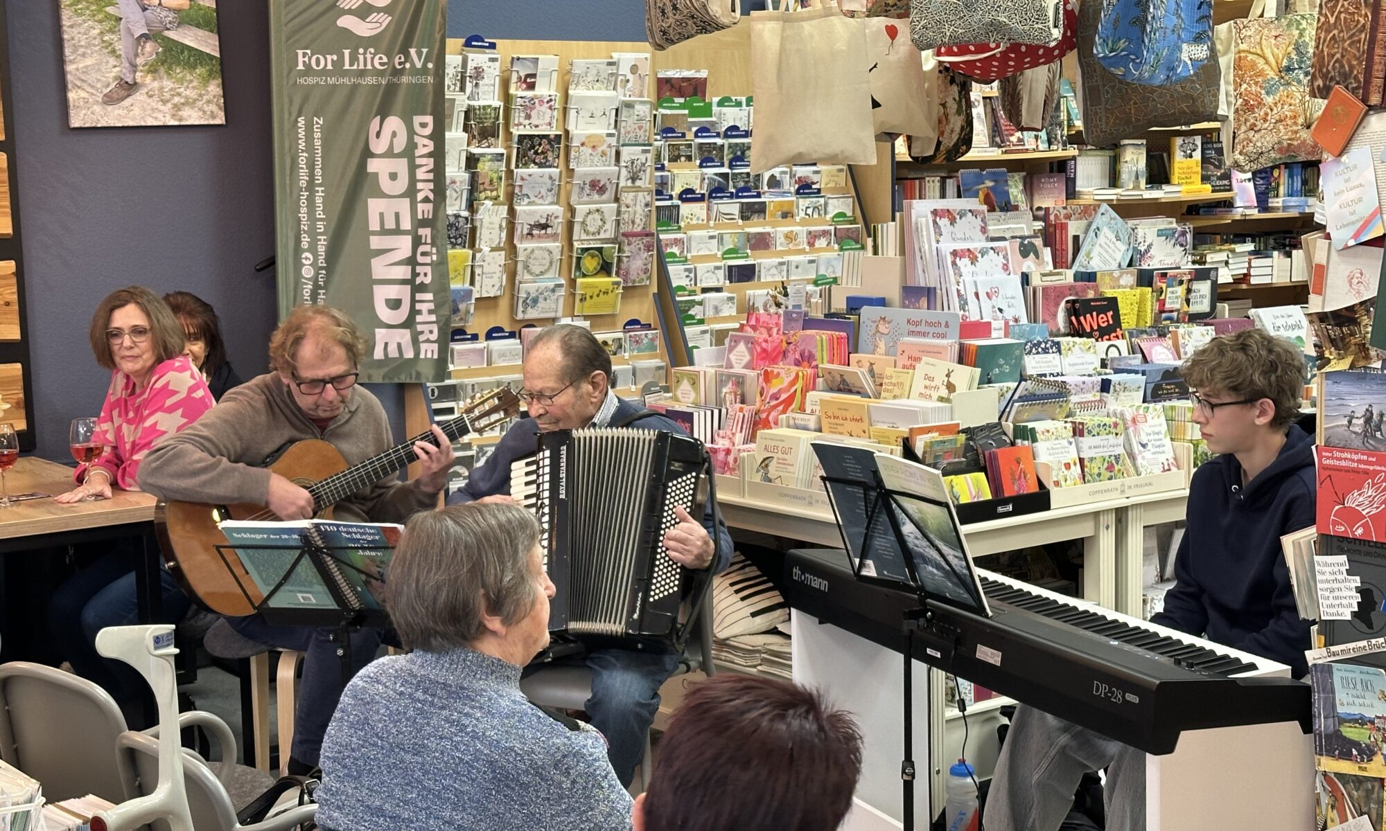 Private Gastgeber, Musikschulen, Bibliotheken, Gaststätten UND natürlich Buchhandlungen öffnen ihre Türen und bringen Musiker und Musikbegeisterte auf kürzestem und unkompliziertestem Weg zusammen.